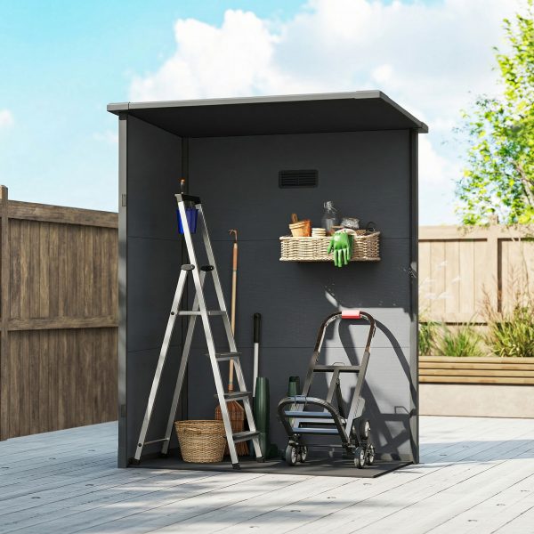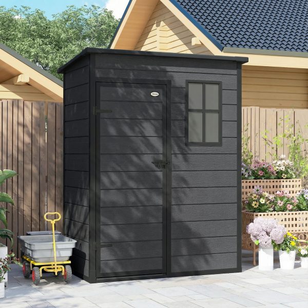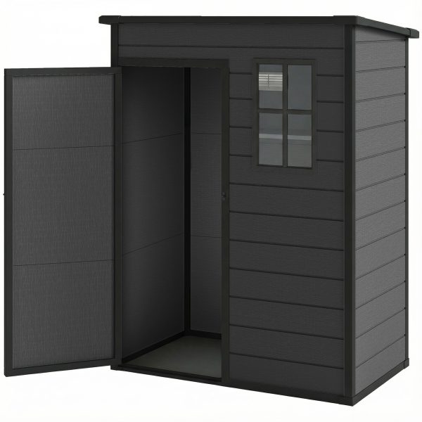 Outsunny 5 x 3FT Garden Shed with Floor, Outdoor Storage Shed with Lockable Door, Window and Vent for Backyard, Patio, Dark Grey
