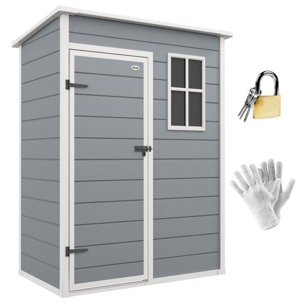 Outsunny 5 x 3FT Garden Shed with Floor, Outdoor Storage Shed with Lockable Door, Window and Vent for Backyard, Patio, Grey