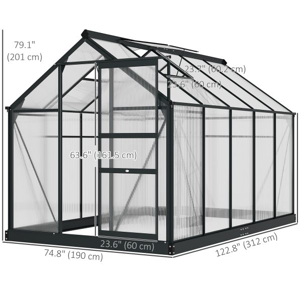 Outsunny 6′ x 10′ x 6.6′ Polycarbonate Greenhouse, Walk-In Green House Kit Garden, Plants Grow, Galvanized Sheet Aluminum Frame with Rain Gutter, Vents and Sliding Door, Grey
