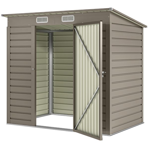 Outsunny 6 x 4FT Galvanized Garden Storage Shed, Metal Outdoor Shed with Double Doors and 2 Vents, Light Grey