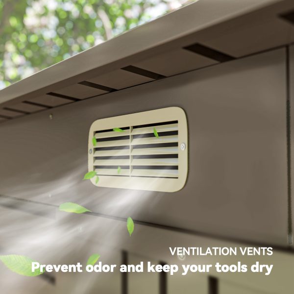 • Two Ventilation Slots: Brings air inside this outdoor shed, helps prevent odour and keeps tools and equipment dry.