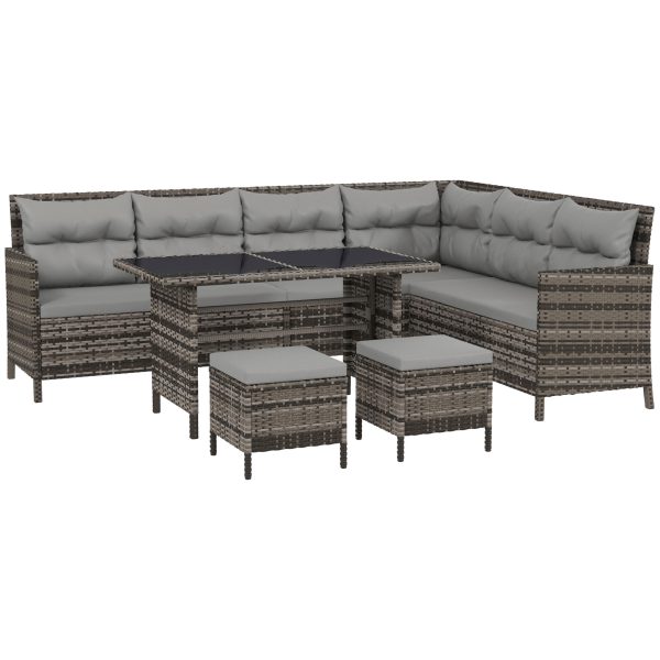 Outsunny 6pcs Outdoor Rattan Sofa Set Garden Wicker Sectional Couch Furniture Set with Dining Table and Chair Grey