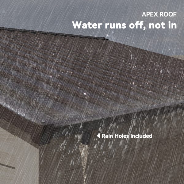 - Sloping Roof: Allows water to roll down to the ground, preventing build up, stagnation and rust damage this outdoor shed.
