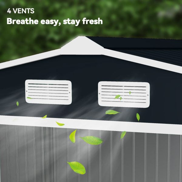 - Strong Construction: Constructed from galvanized steel in finish, this outdoor storage shed is weather and rust resistant for long-lasting outdoor use.