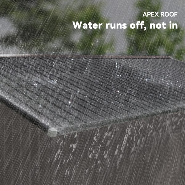 - • Sloped roof prevents moisture and rain from pooling