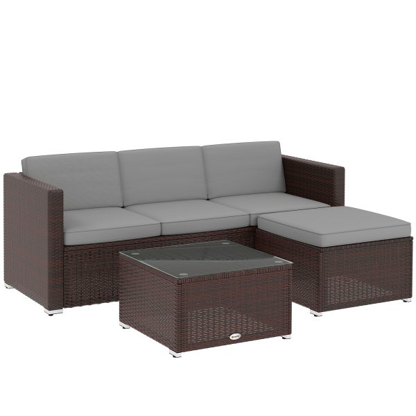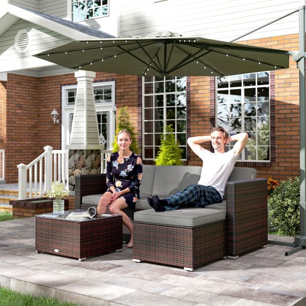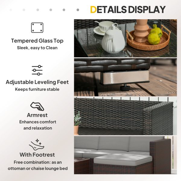 Outsunny Patio Furniture w/ Soft Cushions, Corner Sofa Sets, Grey