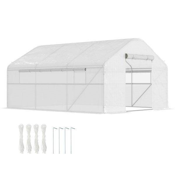 Outsunny Walk-in Tunnel Greenhouse with UV/Wind Resistant, Galvanized Steel Frame and Windows, Garden Planting Warm House, 13′ x 10′ x 6.5′ , White