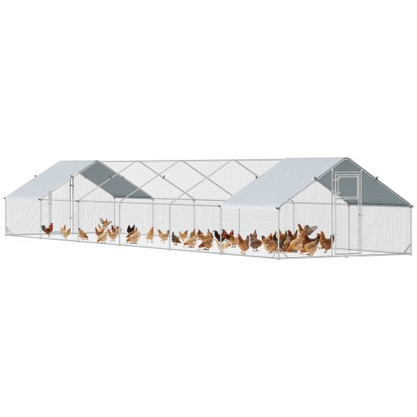 PawHut Metal Chicken Coop with Water- and UV-Protection Cover for Backyard Hen, Duck, Rabbit, 39.4′ x 9.8′ x 6.4′