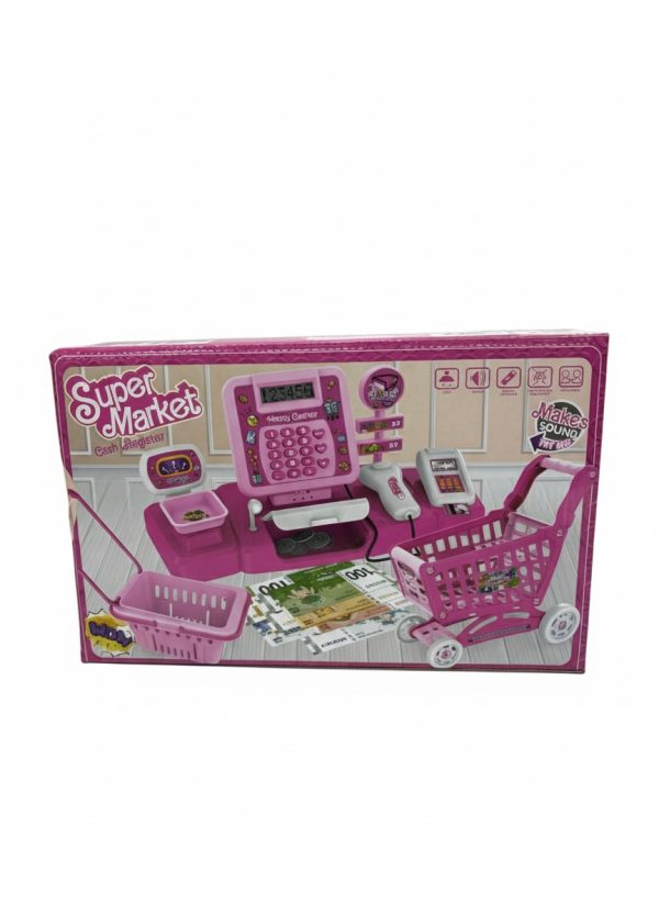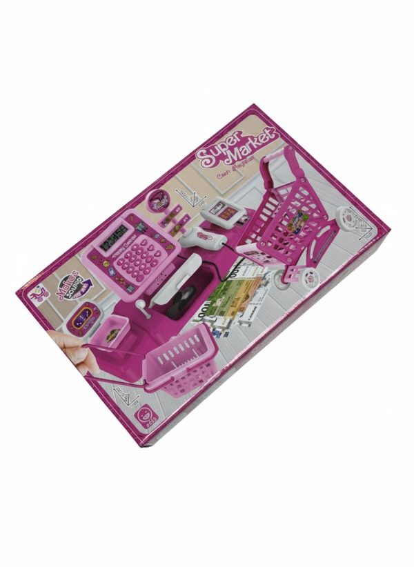 Kids cash Register Toy with Shopping Cart Toddler Pretend Play Store Cashier Register for Kids with Music/Calculator/Scanner Learning Toys for Age 3+