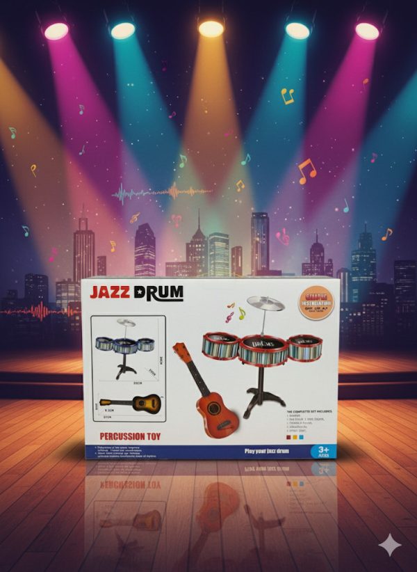 Features The set is branded as “Jazz Drum” and is a plastic toy designed for early music education. It is intended to help stimulate creativity and motor skills in young children.