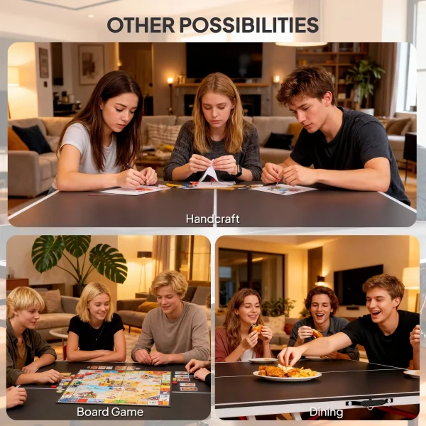 - Not Just A Outdoor Ping Pong Table: With a steel construction supporting up to 110 lbs (50 kg) and a removable net, this ping pong table doubles as a regular dining or game table, offering versatility for all your family’s activities.