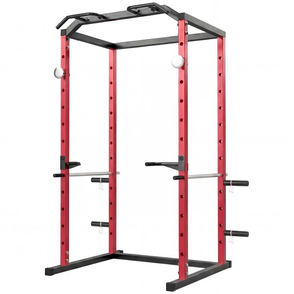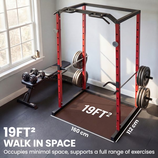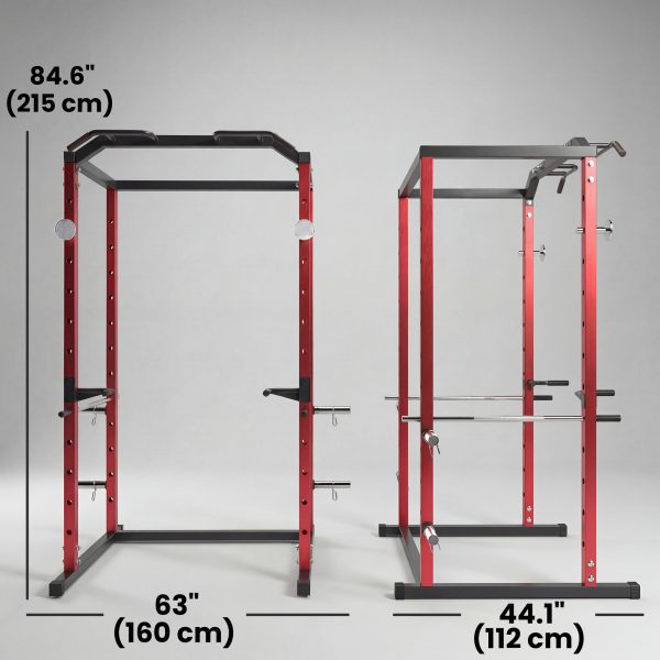 • All-In-One Home Gym: This power rack cage integrates a squat rack, pull-up bar and dip station, providing an efficient full-body workout in your garage, transforming it into a powerful and organized personal fitness space without multiple machines