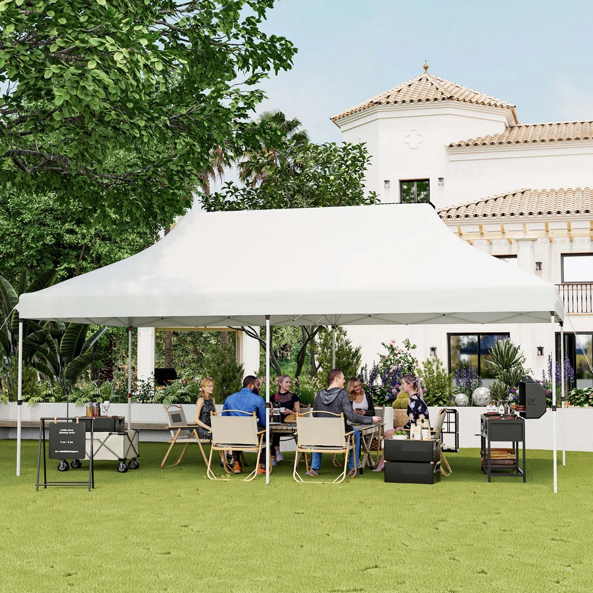 10' X 10' Double Top Deluxe Solar Powered LED Rectangle Patio Umbrella Offset Hanging Umbrella Outdoor Market Umbrella Garden Umbrella, Beige