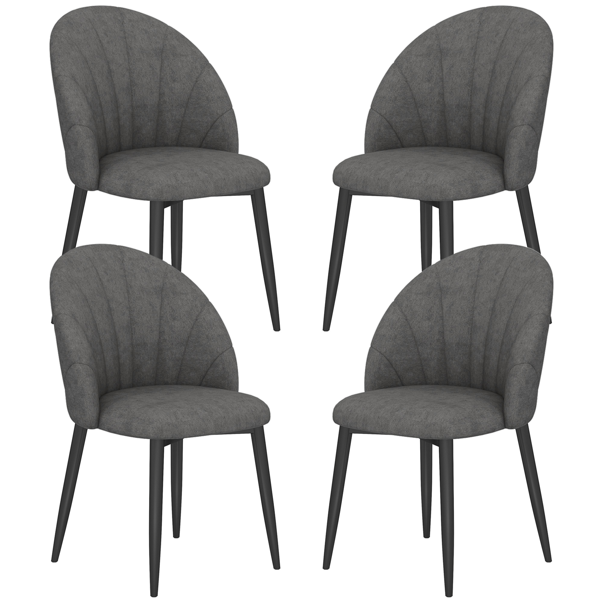 HOMCOM Modern Dining Chairs Set of 4, Upholstered Dining Room Chairs with Metal Legs, Shell Backrest, Padded Seat, Dark Grey
